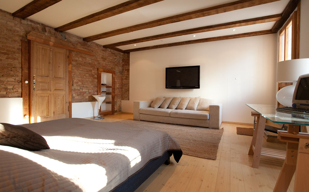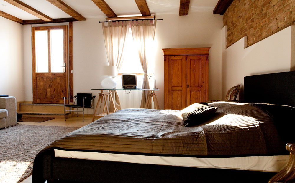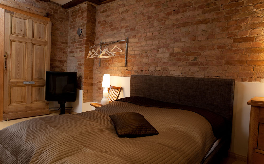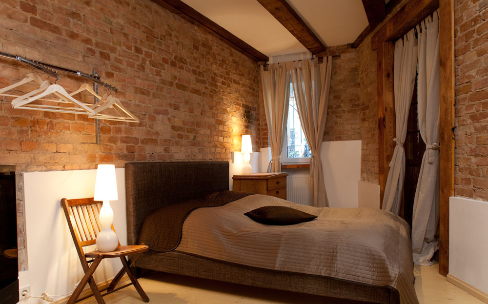 Offen gelegtes Mauerwerk, prächtige Holzbalken und zeitgemäße Möbel schmücken dieses wunderschöne "Designer-Boardinghouse".