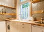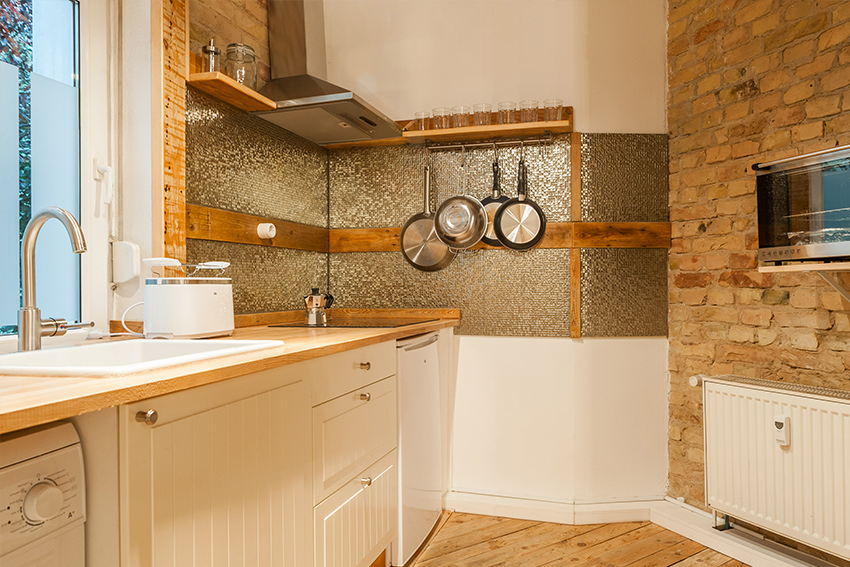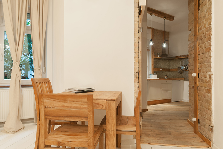 Das wunderschöne Apartment hat sorgfältig geschnitzte, originale Holzdecken was ein rustikales Flair und einen sehr berlinischen Stil erzeugt.