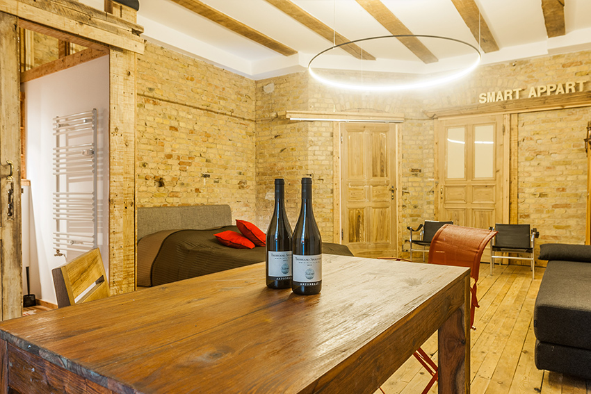 Das wunderschöne Apartment hat sorgfältig geschnitzte, originale Holzdecken was ein rustikales Flair und einen sehr berlinischen Stil erzeugt. Die Einrichtung und die verschiedenen Räume sind dank des eleganten Touchs der modernen Möbel sehr besonders geworden. Das Wohnzimmer ist einladend, es gibt eine angrenzende offene Küche und es lädt jeden zum Entspannen ein. Es wurde mit zwei Sofas, einem Wohnzimmertisch, einem gemütlichen und großen Esstisch mit Stühlen für 4 Personen und mit einem Flachbildfernseher ausgestattet. Der Küchenbereich ist groß und mit allem nötigen Zubehör versehen worden, das Sie benötigen, um Ihre Lieblingsmahlzeiten zuzubereiten. Das Schlafzimmer ist schlicht und hell und hier finden Sie ein Doppelbett, einen Nachttisch und einen Fernseher mit Kabelanschluss. Außerdem gibt es einen DVD-Player und einen Internetanschluss. Zu guter Letzt gibt es in der Wohnung ein wunderschönes Bad das allen Ansprüchen gerecht wird mit Waschbecken und Badewanne.